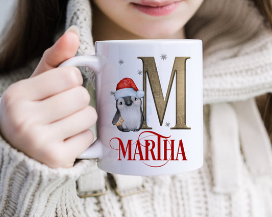 Hot Chocolate Mug, Personalised Christmas Stocking Filler, Xmas Gift Idea, xmas Penguin, Santa, Mrs Claus, Christmas Eve Box Idea