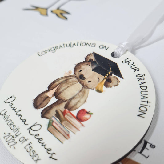 Personalised Graduation Gift | Round Ornament | Bear Illustration | Unique Tag Keepsake | MDF Circle Disc |