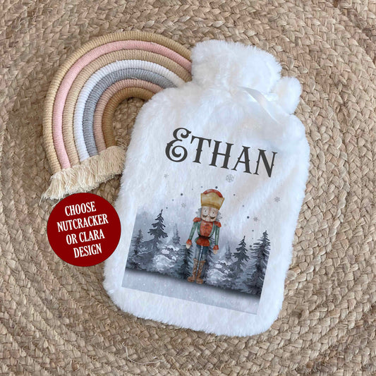 Personalised Hot Water Bottle, Nutcracker Christmas Gift Idea for Her or Him, Watercolour Design, Stocking Filler, Christmas Eve Box Idea