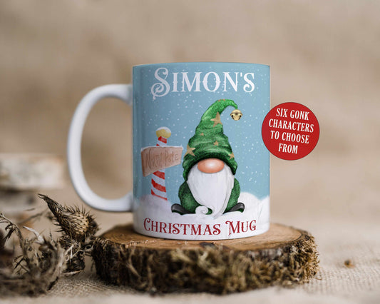 Personalised Gonk Mug, Christmas Hot Chocolate Mug, Red Green Pink Blue Gonk, Stocking Filler, Gift Idea for Her and Him, Mum, Nan, Dad