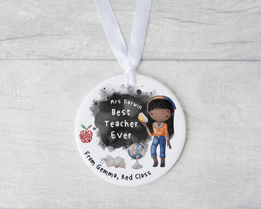 Personalised Teacher Gift, Round Ornament, End of School Term, Unique Tag, Keepsake, MDF Circle Disc, Cheap Teacher Present