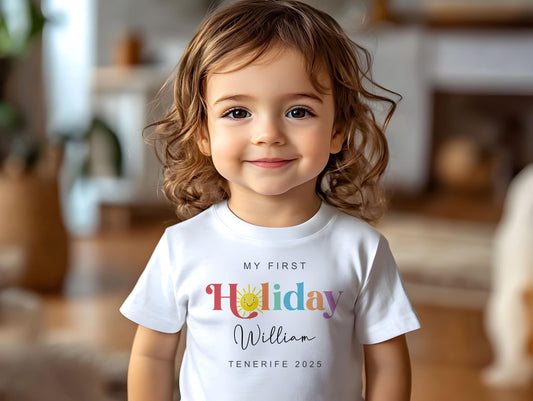 My First Holiday T-Shirt - Blue or Pink Word Design
