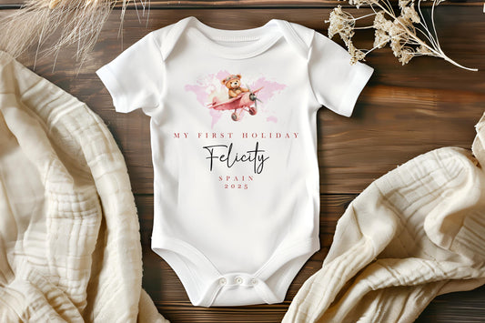 My First Holiday T-Shirt - Plane, Blue or Pink Design