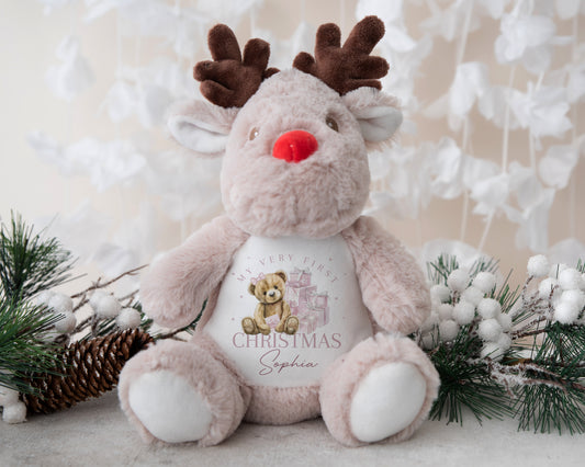 Reindeer Soft Toy - First Christmas - Blue or Pink Bear
