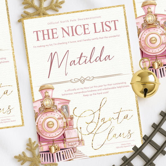 Nice List Certificate - Blue or Pink Train - A4 Gloss Certificate