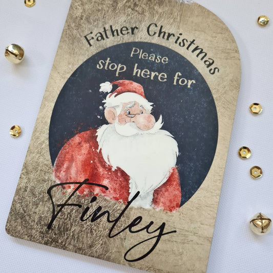 Personalised Santa Please Stop Here Door Hanger - Cute Santa Sleigh