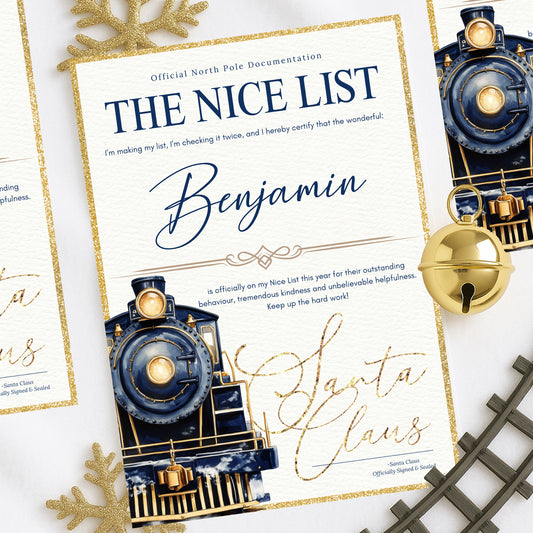 Nice List Certificate - Blue or Pink Train - A4 Gloss Certificate