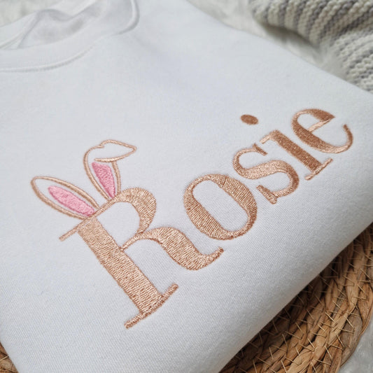 Embroidered Bunny Ears Sweatshirt - Pink or Blue Ears