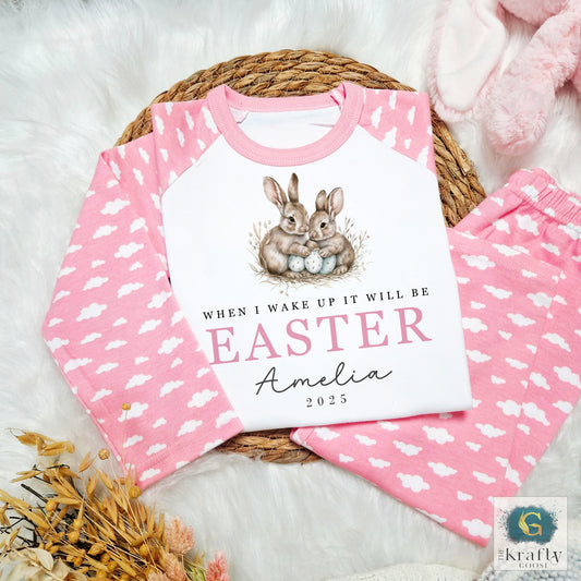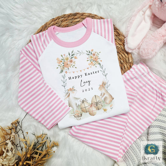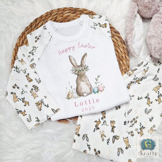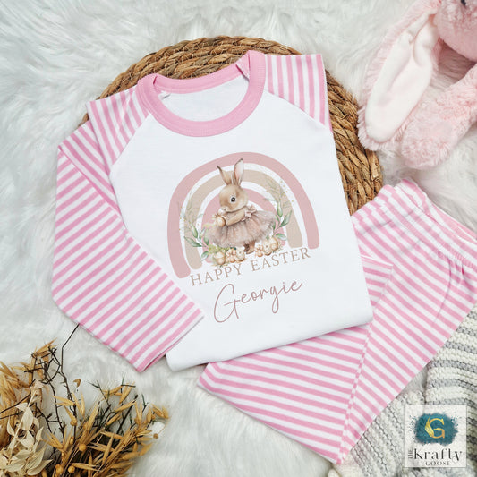 Easter Pyjamas - Pink Bunny Rainbow Design