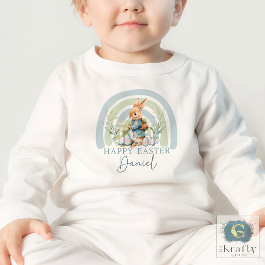 Easter Pyjamas - Blue Bunny Rainbow Design