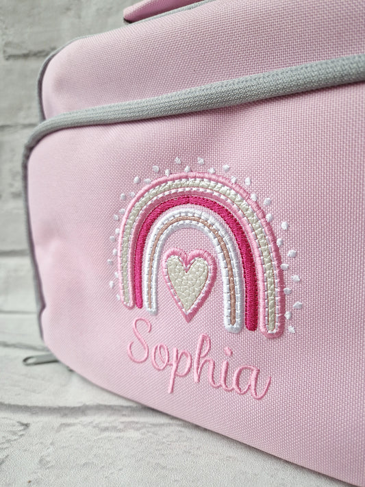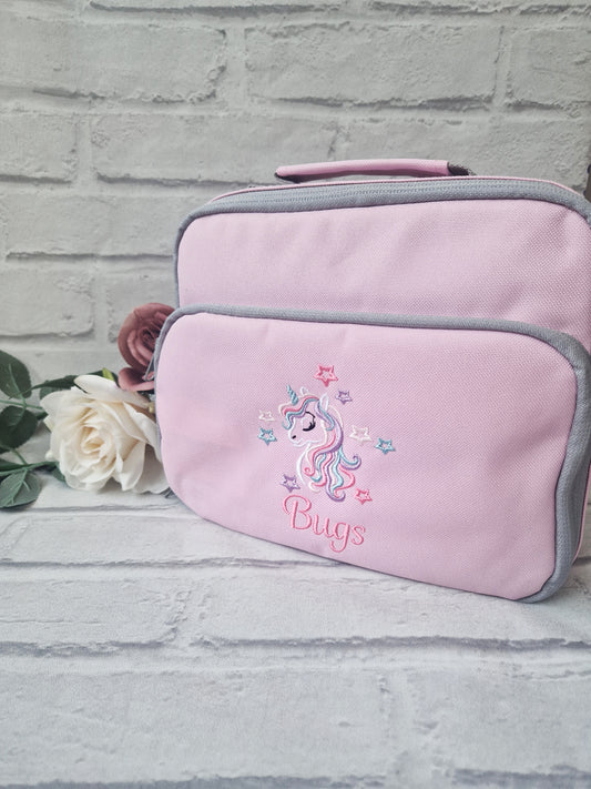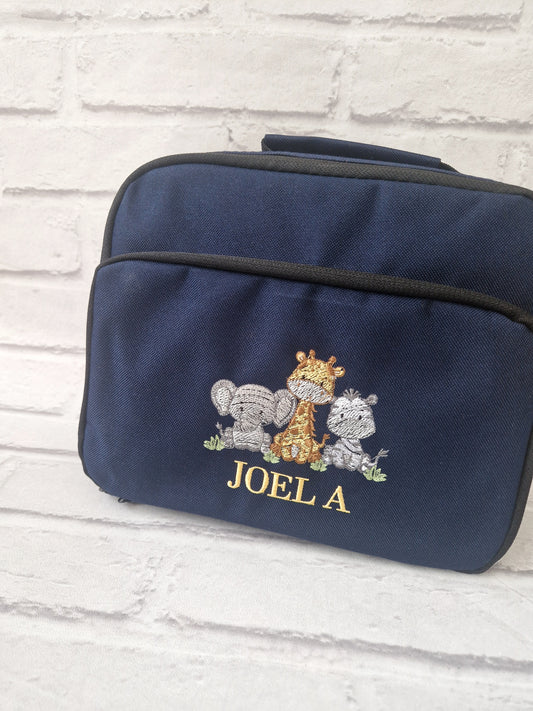 Embroidered lunch bags, made to last! Four colours to choose from, fully insulated, with carry handle and front zip compartment! Matching backpacks available!