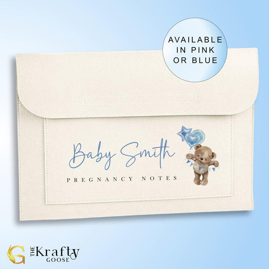 Pregnancy Maternity Notes Folder - Blue or Pink Bear Design