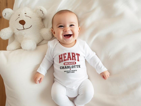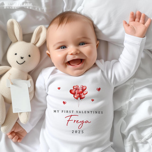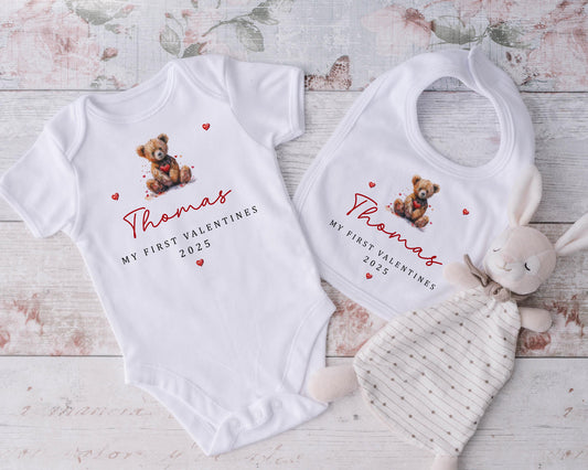All of our stunning Valentines Baby Collection are available to print on Bibs, Vests or Rompers. You can choose this in the item options.