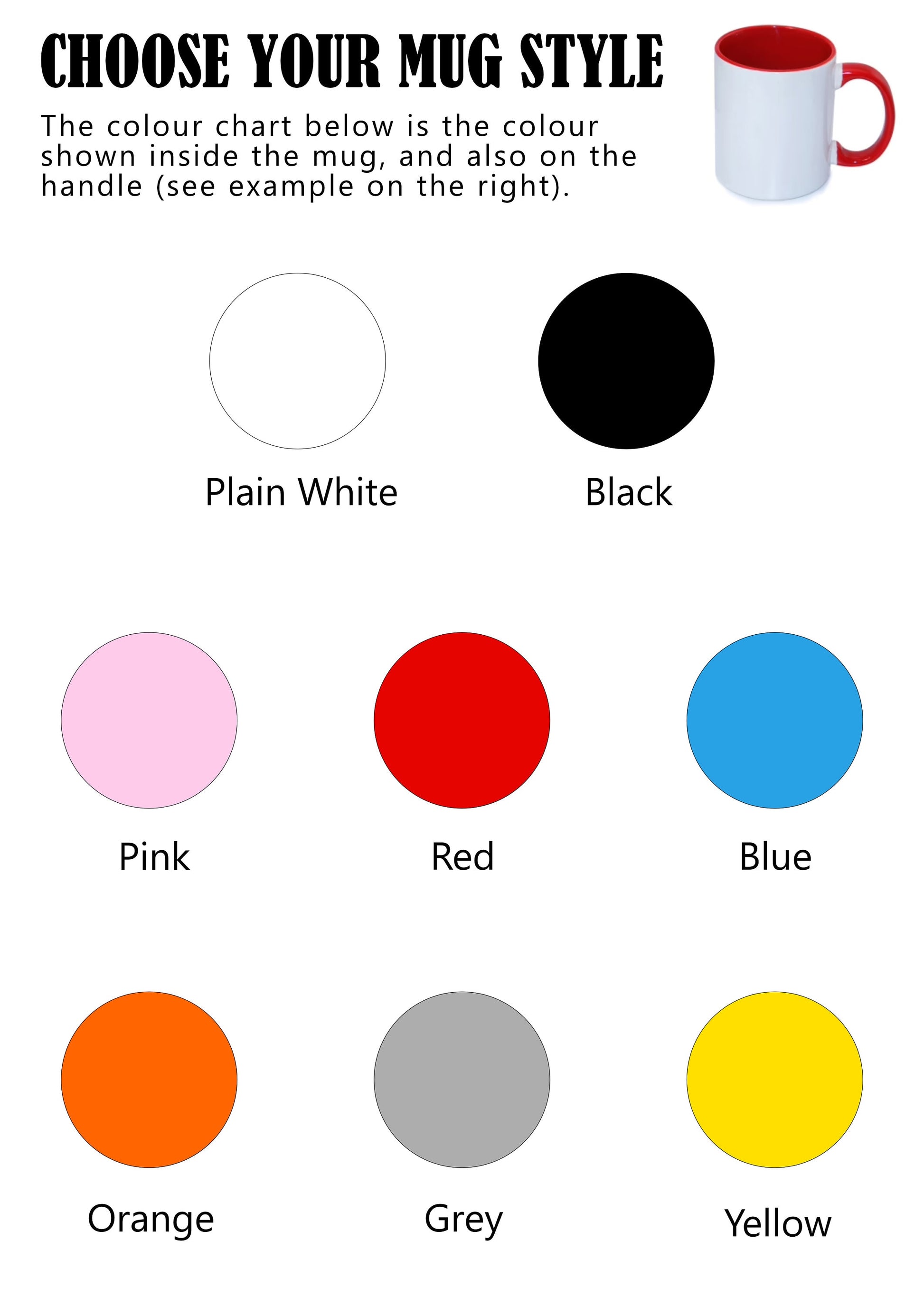 Various Coloured mugs available - Scroll through the image to see your options and choose from the dropdown.