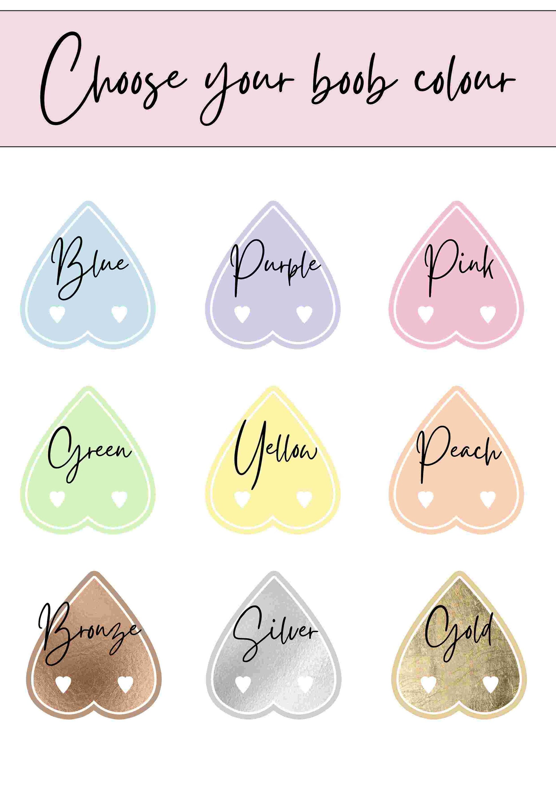 Nine colour variations to choose from, including popular Bronze, Silver and Golden Boobies!