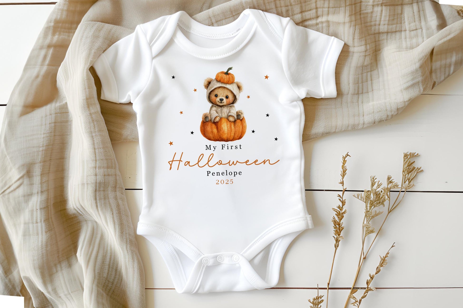First Halloween Baby Outfit - Cute Teddy Bear Pumpkin Design