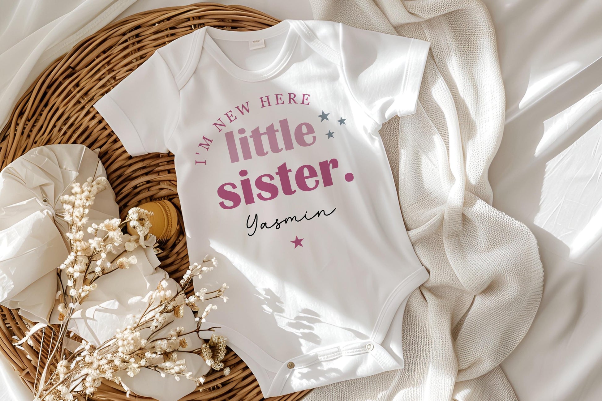 Celebrate your little one's becoming big brothers and sisters is a wonderful time. These adorable "I'M NEW HERE" baby garments are a great way to match your older siblings with a personalised gift.