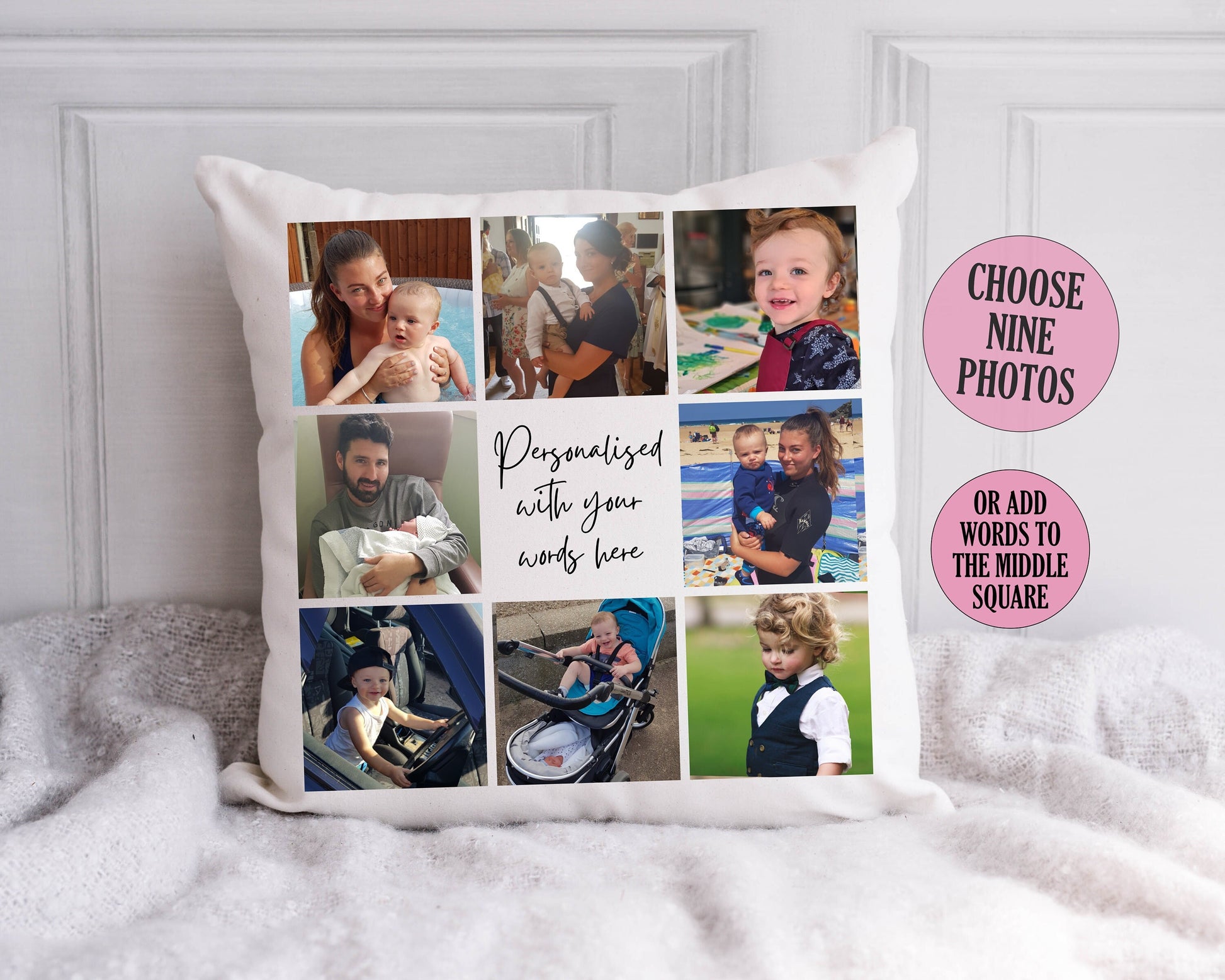 Display nine of your chosen photographs on this super soft cushion, or swap the middle square for any words of your choice! Adding words is ideal to add a personalised message to a loved one or friend.