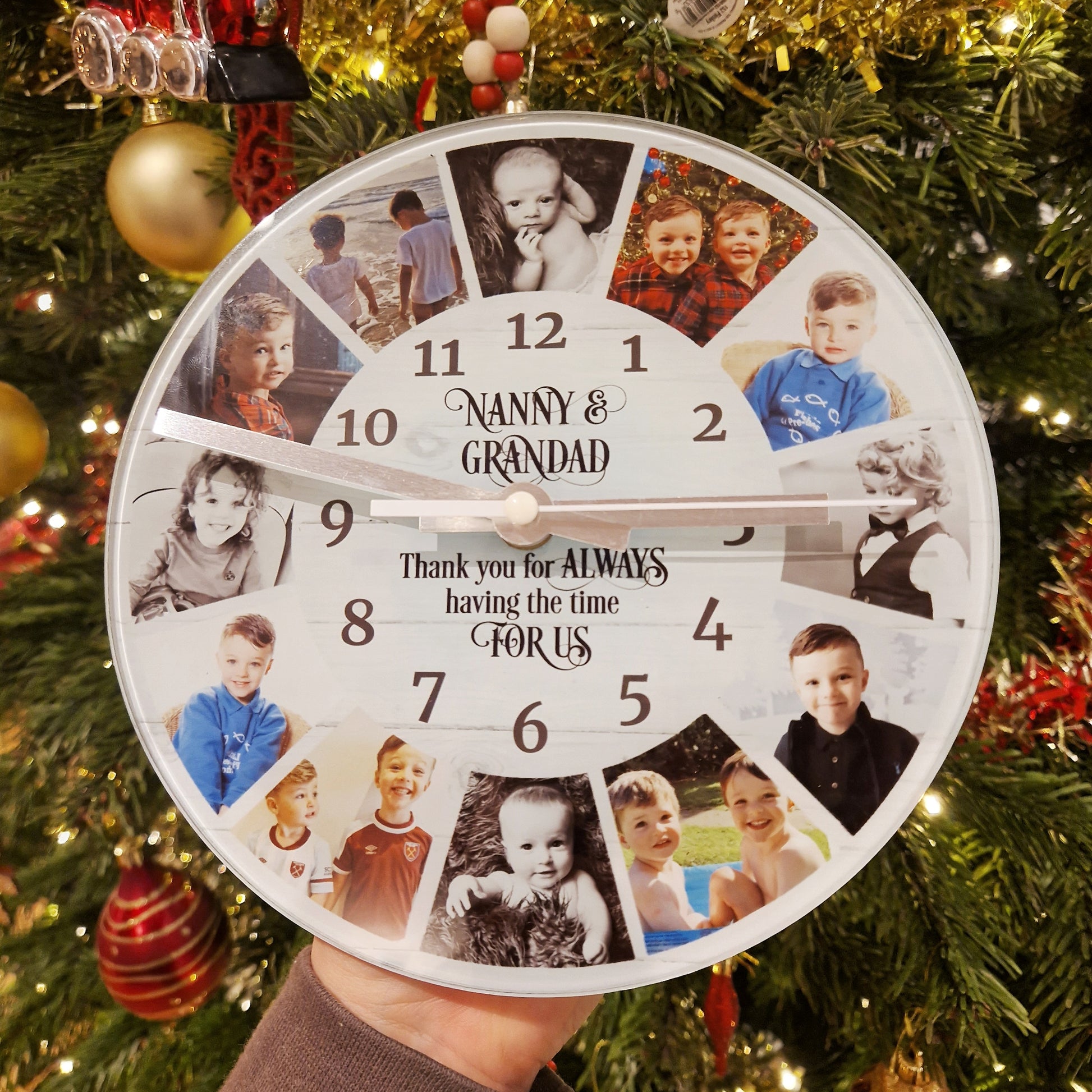 Choose twelve of your favourite photos, and display them around this beautiful, glass clock. These should be emailed within 48 hours of purchase to TheKraftyGoose@outlook.com