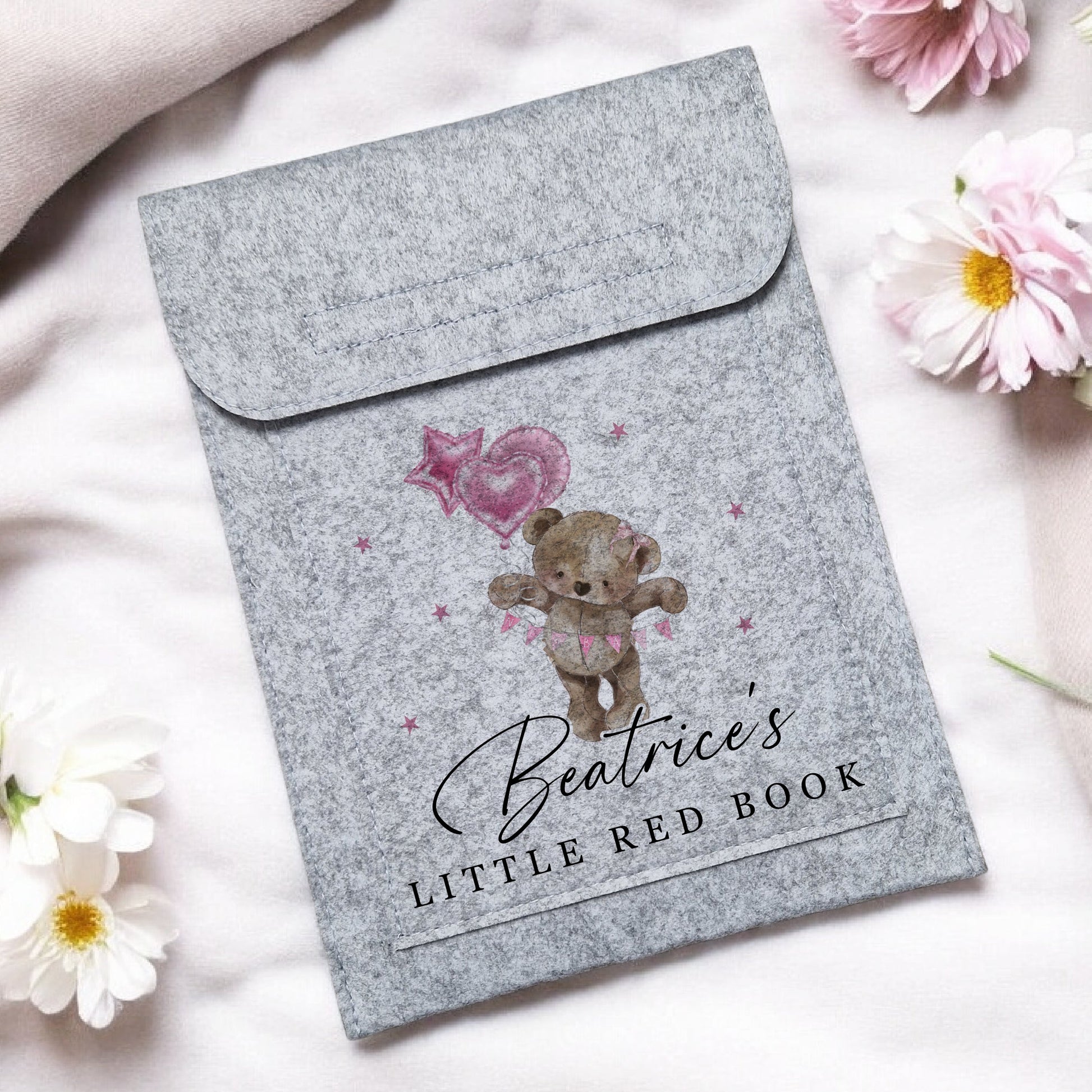 Pink or Blue Bear Design - Little Red Book Holder