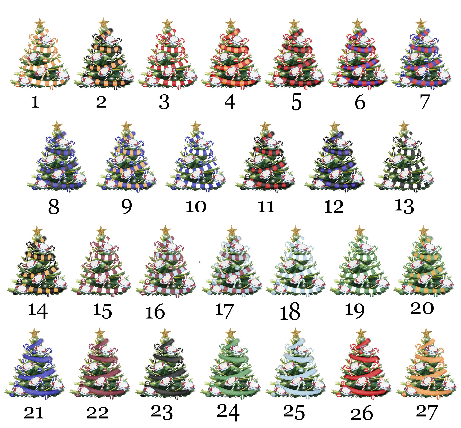 Special Delivery For... Personalised with name and this cool Christmas Tree with Rugby Balls and coloured scarf - 27 Designs to choose from to match your team colours!